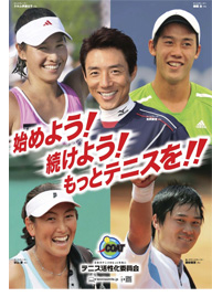 テニス活性化委員会ではテニススクールや、 テニスクラブなどテニス施設やテニスショップ にテニス活性化のスローガンを啓蒙する「始め よう、続けよう、もっとテニスを!」ポスターを全 国約3,000ヶ所に配布しました。